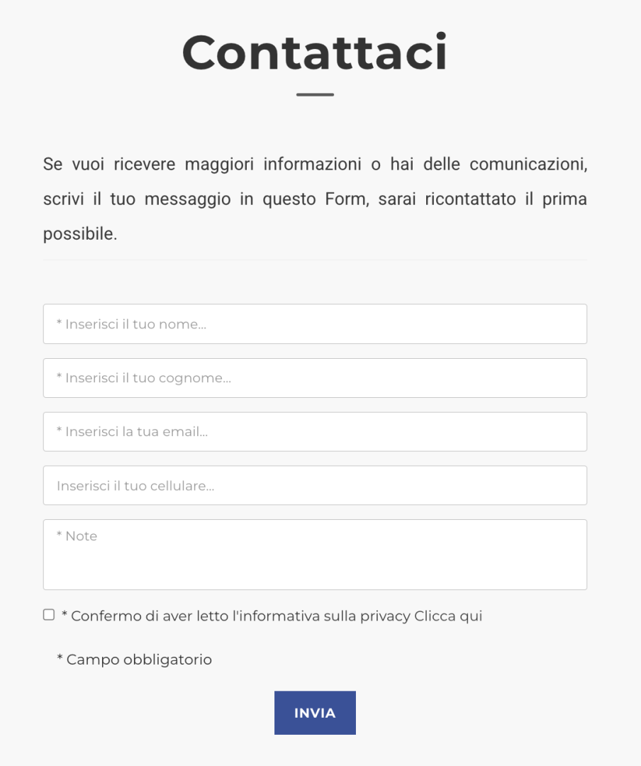 - Modificare testi minori della pagina e gestire il documento sulla privacy.